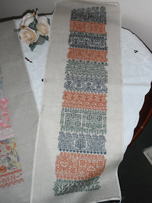 Annette plans to stitch this same sampler four times - each one in a different colour -