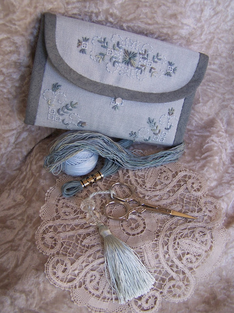 I had made up kits of linen fabric, threads and pretty printed cotton fabrics